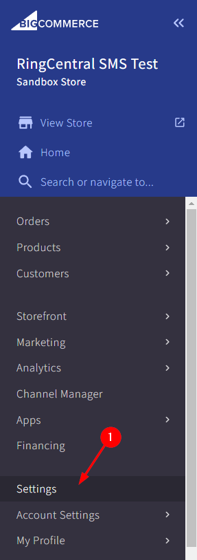 Within your Big Commerce admin area select the "Settings" link