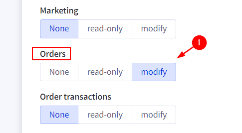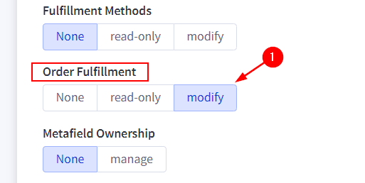 Then make changes to both the "Orders" and "Order Fulfillment" categories; setting them to "modify".