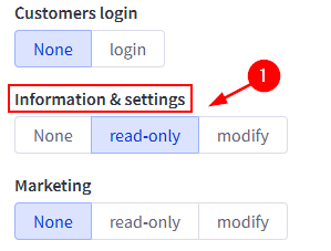 Next locate the "Information & settings" category and move its designation to "read-only".
