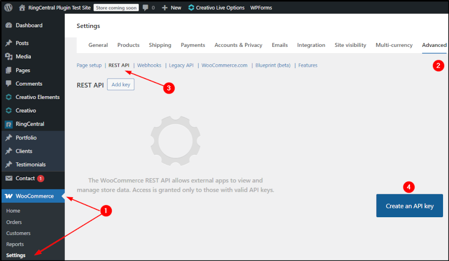 RingCentral application. Within your WooCommerce admin area (within WordPress Admin) select the "Settings" link